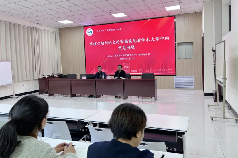 10月25日下午,“天山树人”讲堂第五十九讲在文育楼108室举办,《当代教育科学》编辑部主任蔡其全博士作了题为“从核心期刊论文的审稿意见看学术文章中的常见问题”的学术讲座。讲座由教育科学学院副院长马秀麟教授主持,学院教师及硕博士生近120人聆听了讲座。蔡其全博士围绕选题、结构、逻辑、表达四个方面归纳了期刊文章中常出现的问题。还就《当代教育科学》常设栏目、被拒文章、偏向的研究方向进行了总结梳理。