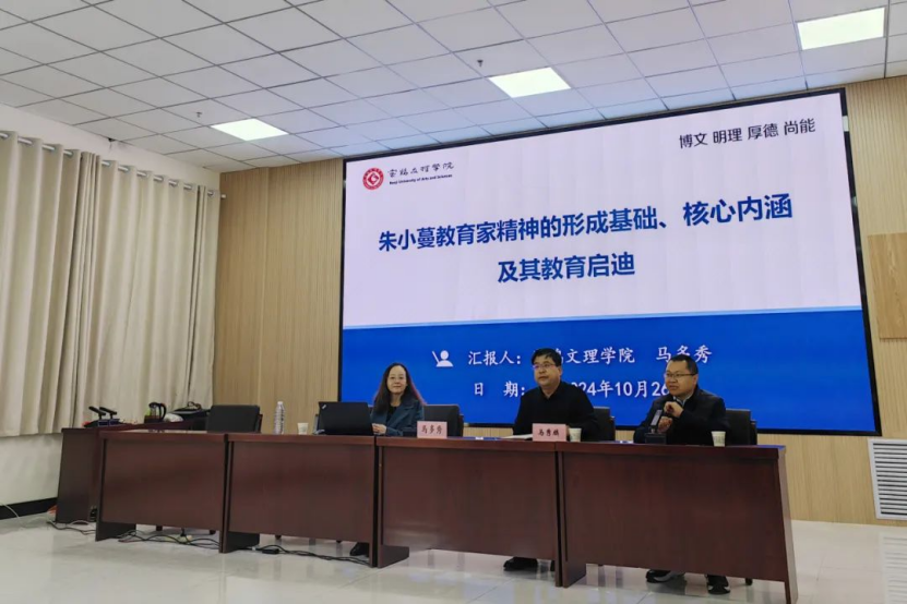 10月27日上午,“天山树人”讲堂第六十讲在文育楼108室举办,宝鸡文理学院教育学院院长马多秀教授作了题目为“朱小蔓教育家精神的形成基础、核心内涵与教育启迪”的学术讲座。讲座开始前,教育科学学院院长程良宏教授致辞,副院长马秀麟教授主持讲座,近100人聆听了讲座。马多秀教授围绕朱小蔓教育家精神的形成基础、核心内涵和教育启迪三个方面阐述了朱小蔓教育家精神。最后,谈到其教育精神对当前教育强国建设背景下建设高素质专业化教师队伍具有深刻的教育启迪。